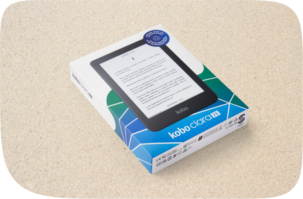 Nos nouveaux emballages ne contiennent pas d’aimants et sont fabriqués avec du papier recyclé certifié FSC. Ils sont recyclables et sont imprimés avec de l’encre de soja, un des processus d’impression les plus éco-conscientes et renouvelables. Pour en savoir plus sur les initiatives de durabilité Kobo rendez-vous sur kobo.com/eco.